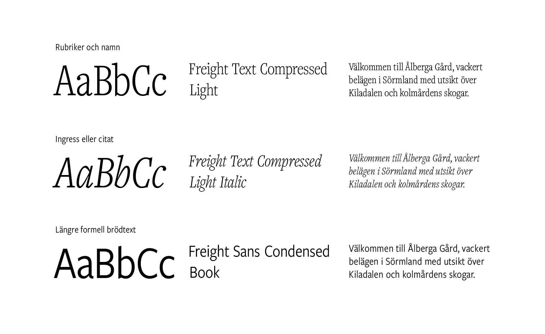Ålberga Gård utanför Nyköping är ett företag med lantbruk, fastigheter och skog. Logotypen togs fram som ett stadigt märke att ta vara på både historien och dagens verksamhet.